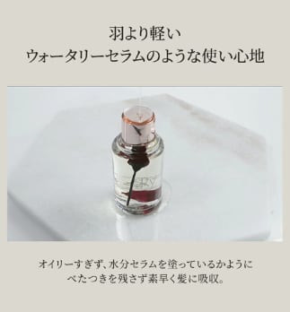 バラから抽出した“ROSE PDRN”と“自然由来のオイル成分”で髪のダメージを優しくケアします。水より軽く、素早く髪に馴染み重たくなりすぎない軽い使用感で、髪と肌にツヤを与えます。