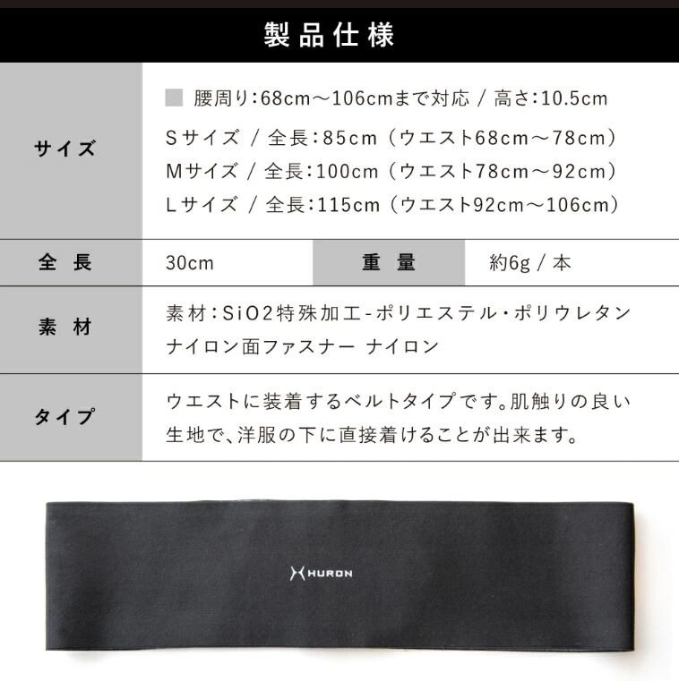 ヒューロン リカバリーウエストバンドは、特殊な繊維を使用しており、身体にぴったりとフィットします。快適な着用感を保ちながら、体温調節機能により運動中の熱を適切に逃がし、常に快適な状態を維持します。このアイテムを着用することにより、運動後のリカバリーが円滑になり、次のアクティビティに向けたパフォーマンス向上をサポートします。