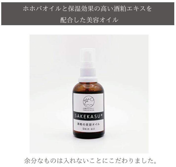 ホホバオイルと保湿効果の高い酒粕エキスを配合した美容オイル