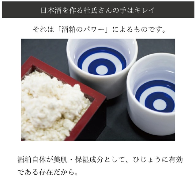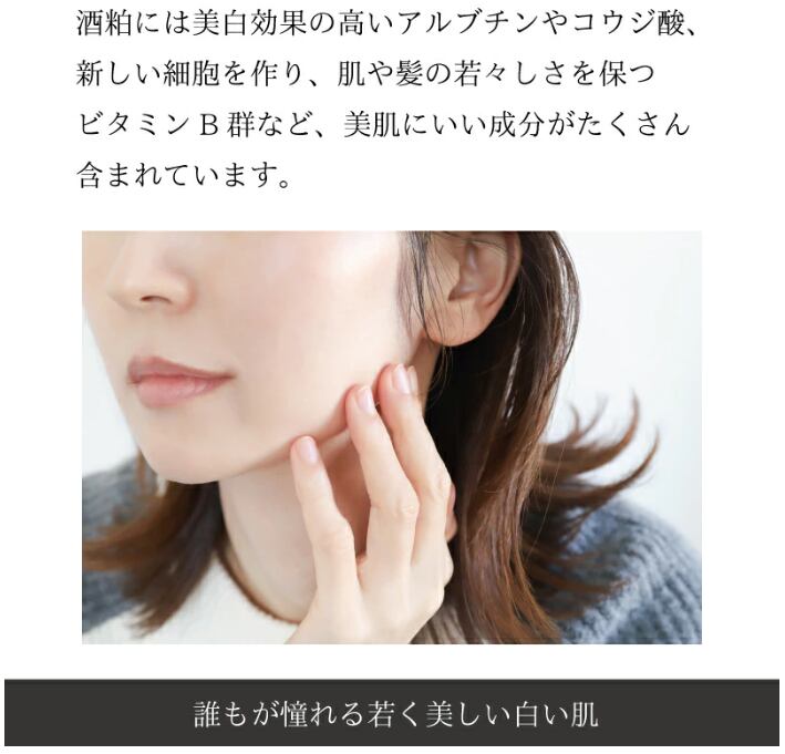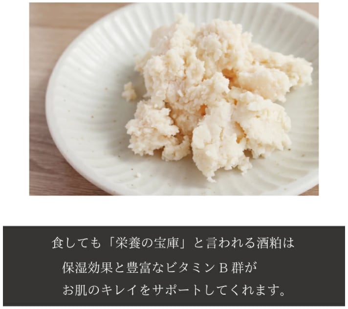 酒粕の効果で杜氏さんのようなしっとりと滑らかなお肌へ。