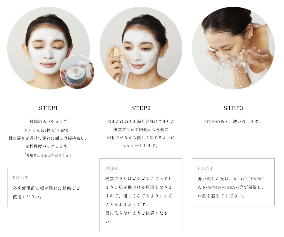 ・使い方は簡単、洗顔料をブラシに適量とり、やさしくマッサージするだけ。手軽に美肌ケアを始められます。